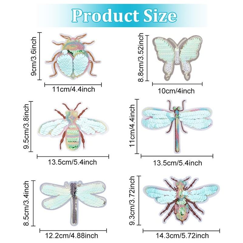 - The package includes: you will receive 6 different styles of sequin patches: 2 kinds of bee patches, 2 kinds of dragonfly patches, 1 ladybug patch, 1 butterfly patch, enough for you to choose and use.