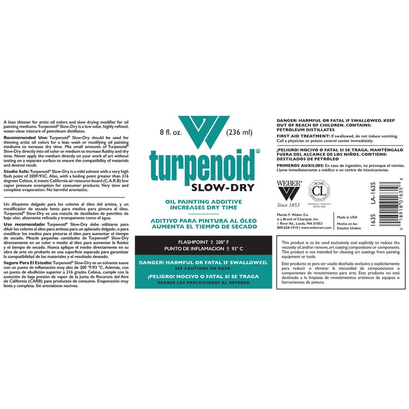 Weber 1635 Turpenoid Slow-Dry Oil Painting Additive, 236ml Bottle, 1 Each, Clear