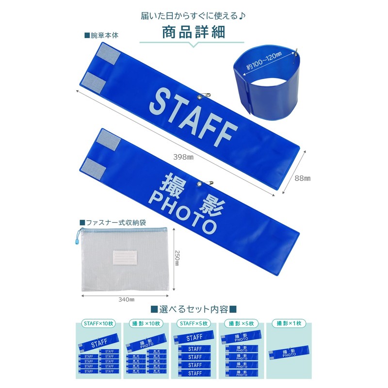 - Comes with an armband with the words "PHOTO PHOTO" and can be used immediately upon arrival. Easy to attach with Velcro tape. If you are concerned about falling off, you can use a fixing pin to secure it securely