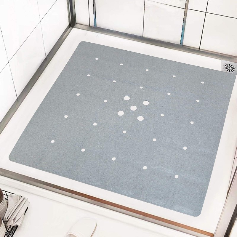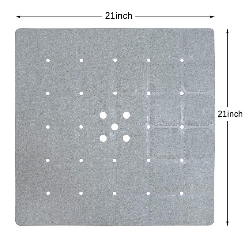 Webos Silicone Foldable Square Shower Mat, No Suction Cups, 21x21 Inches, Non Slip, Drain Hole in Middle, Textured Surface, Bath Tub Mat for Shower, Bathroom Stand Up Shower Stall Safety Matt, Grey
