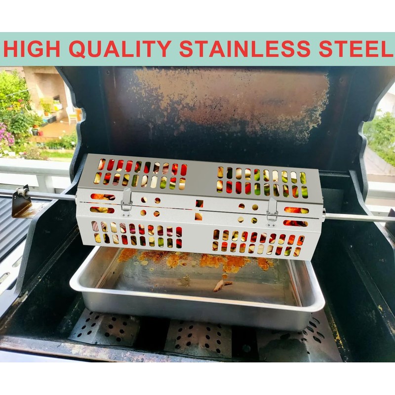 - EXCELLENT QUALITY: Made of high-quality stainless steel, sturdy and durable, food-grade materials allow you to use more safely, non-stick surface, anti-rust, more healthy cooking your food, Smooth surface is less likely to stick and easier to clean, our stainless steel rotating grill basket is a must have grilling accessory for your gas grill!