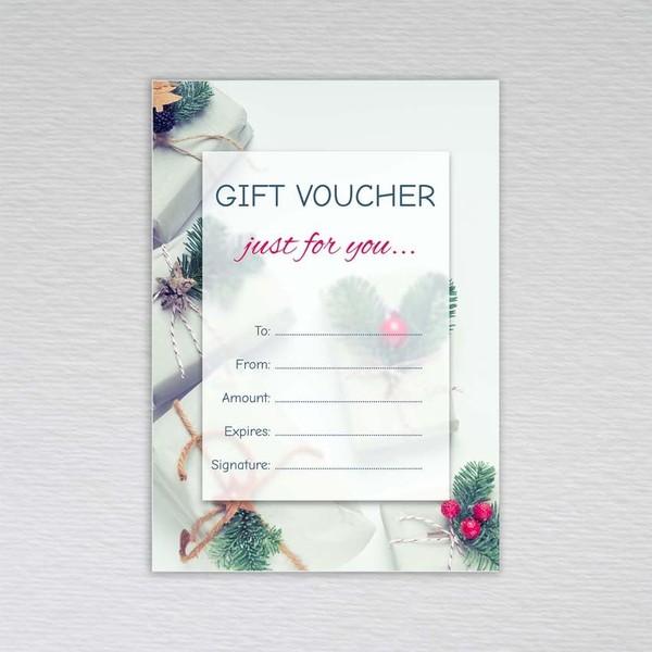 - A6 (approx. 148mm x 105mm, postcard size) non-folded Christmas Gift Voucher. Printed on 250gsm white card with a luxurious feel that's smooth and suitable for writing on.