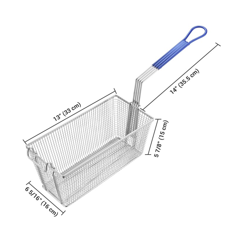 - Large Capacity - 4 pcs Deep Fryer Baskets, featuring a large size of 13" x 6 5/16" x 5 7/8" for holding 4.4 Lbs French fries, perfect for frying all your foods in one place, helping you to avoid repetitive fishing around or over-frying of individual food, ideal for both commercial and home use - Safe - Equipped with a comfortable and ergonomic non-slip plastic handle enabling a sturdy grip, preventing scalding and ensuring safe operation, along with a detachable design for easy cleaning - Durable - Features a heavy duty metal construction with nickel plating for resistance against rust, corrosion, and wear-and-tear, ensuring a long service life - Wide Application - Ideal for frying a wide variety of food items including chips, fish, sausages, samosas, mozzarella sticks, onions rings and other deep fried foods - Easy Draining - Features a hook on the basket for conveniently hanging it up on the fryer's bar to drain oil effectively, along with a hole on the bottom of the handle for easy hanging when not in use