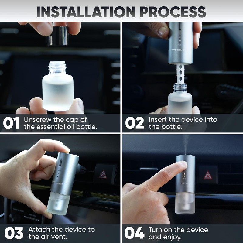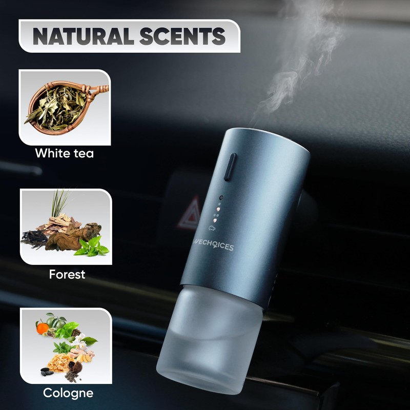 WeChoices Smart Car Air Freshener Diffuser with Alpine White Tea, Cologne, Spring Forest- Fragance Oil Aromatherapy for Car, Home, Office, USB-C Rechargeable, Silent, Refillable (Aromatherapy)