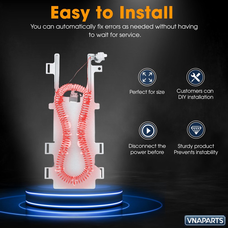 Ensure your dryer operates efficiently again with our reliable Dryer Heating Element Kit. Experience hassle-free drying cycles and keep your laundry routine on track!