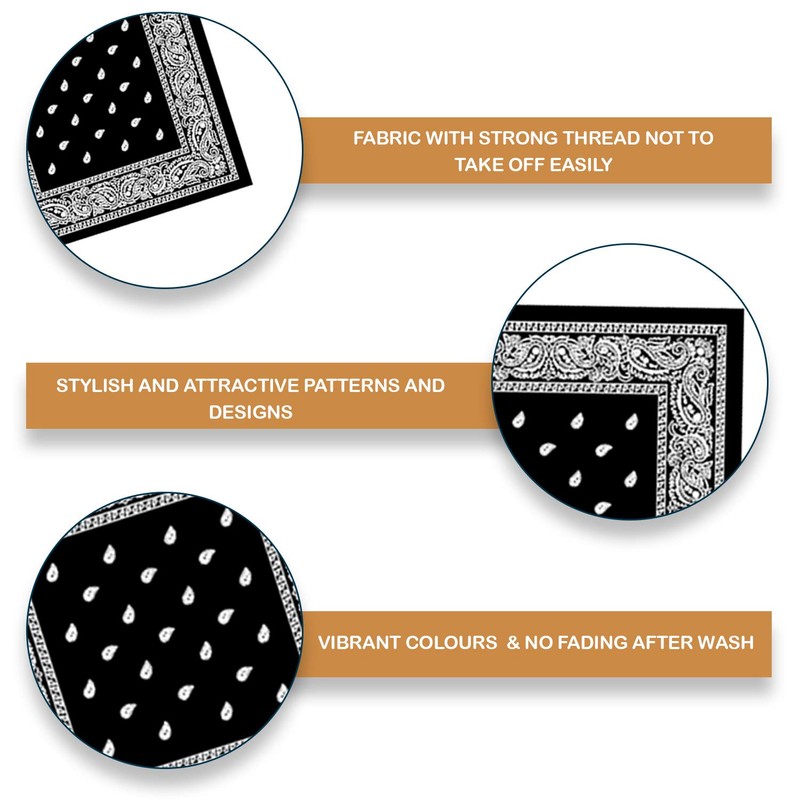 - UNISEX BANDANA FOR MEN WOMEN: This Stylish bandana head scarf can be worn by both, men and women. It comes in a wide size of 54cm x 54cm.