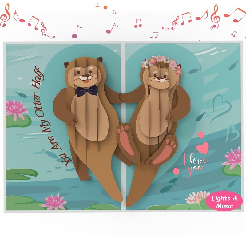 Wedding Anniversary Card, 1st/ 10th /20th/30th/40th/50th/60th Wedding Anniversary Cards with Music and Lights for Mr&Mrs, Wife, Couple, Pop Up Otter Couple Card for Valentine's Day, Birthday Card