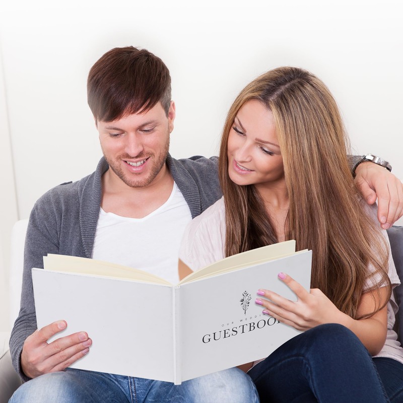Design - Minimalistic Floral Design White Guest Book with blank pages
