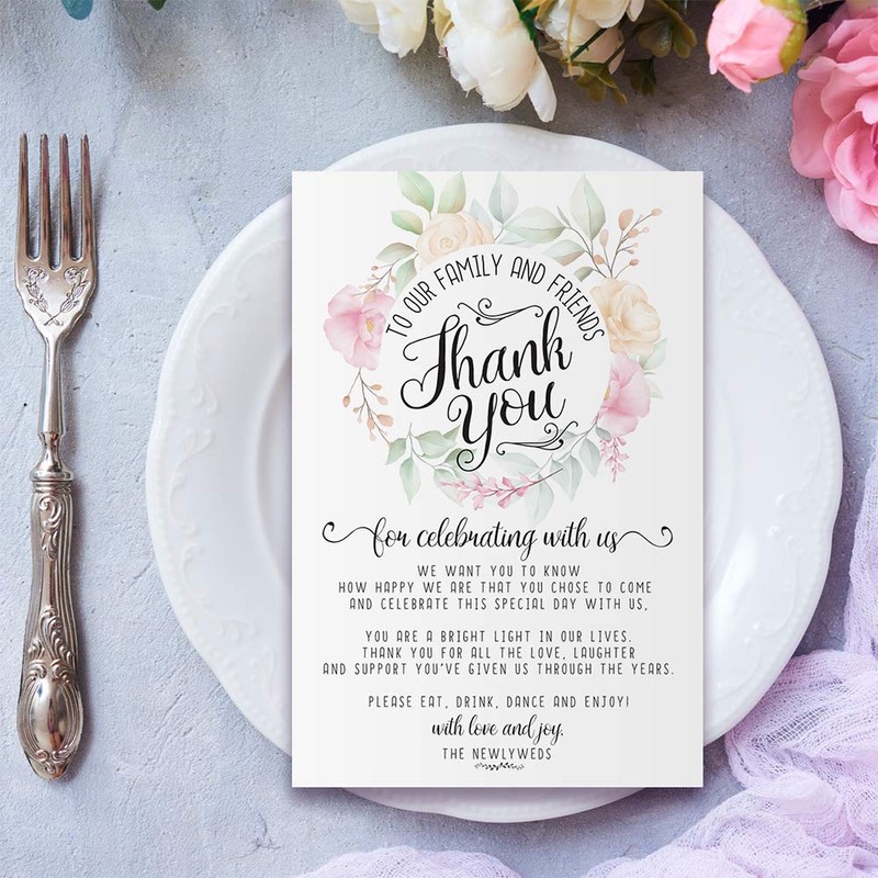 Wedding Thank You Place Cards - Set of 50 - Floral Newly Weds Accessories, Planning Supplies, Great for Guest Dinner Table Settings, Blank Stationery