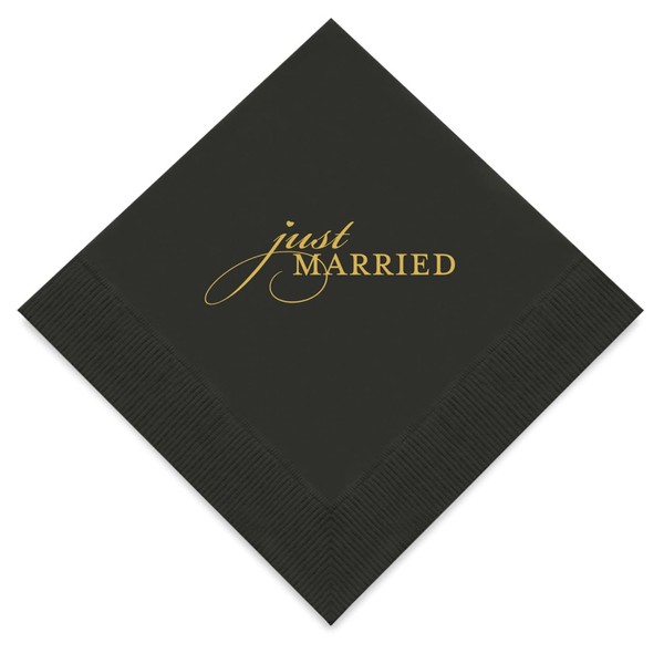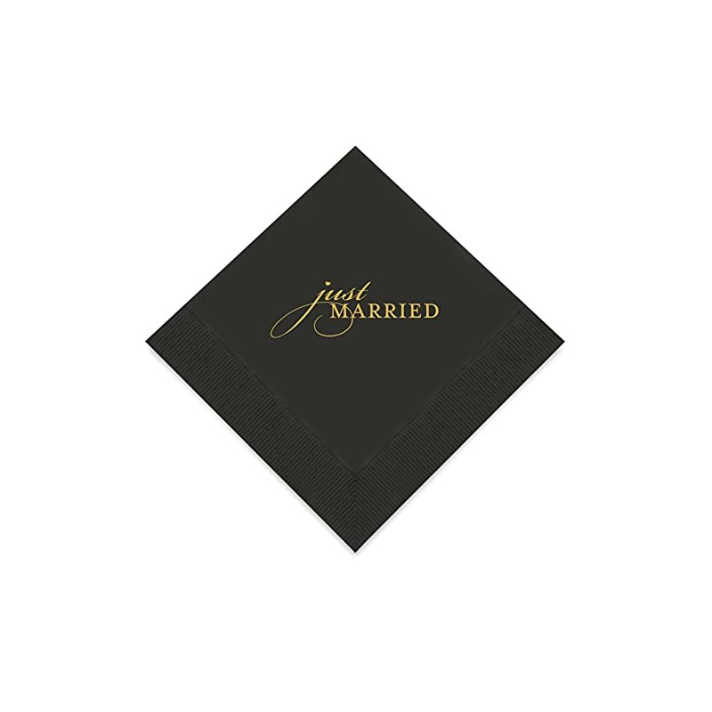 Weddingstar 3-Ply Gold Foil Cocktail Napkins Black - Just Married