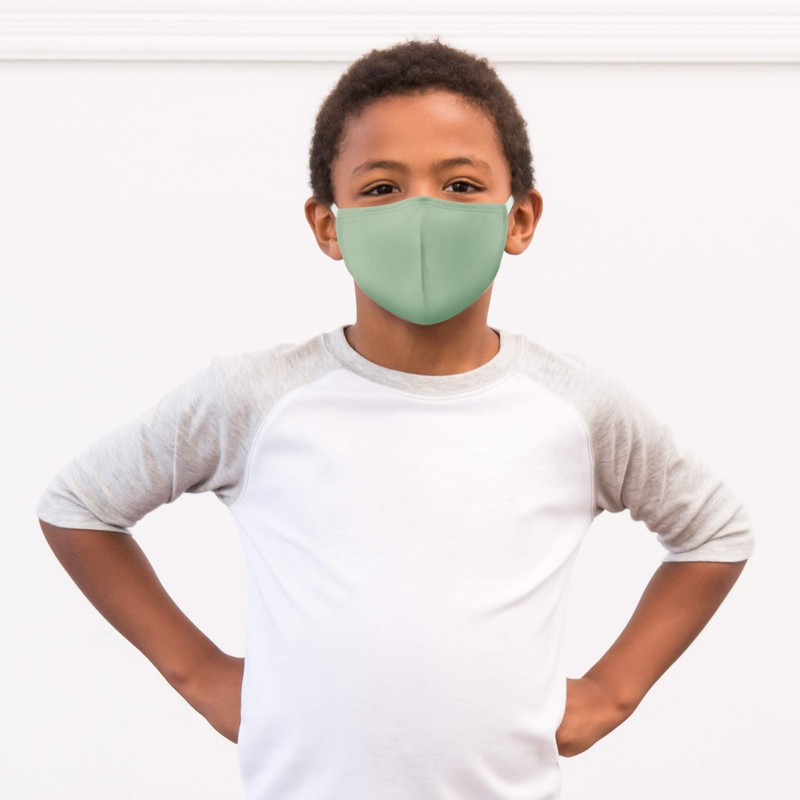 WEDDINGSTAR 3-Ply Kid's Washable Cloth Face Mask Reusable and Adjustable with Filter Pocket - Sage Green