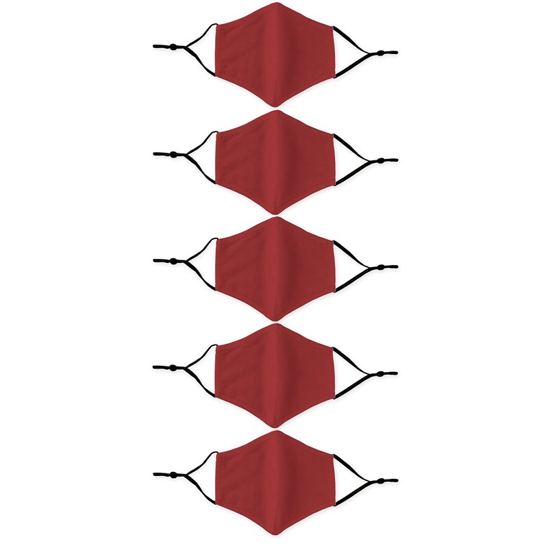 - Mask: 6.75" (L) x 5.25" (H), Ear Straps: 3.55". Contains 5 Adult Red Face Masks.