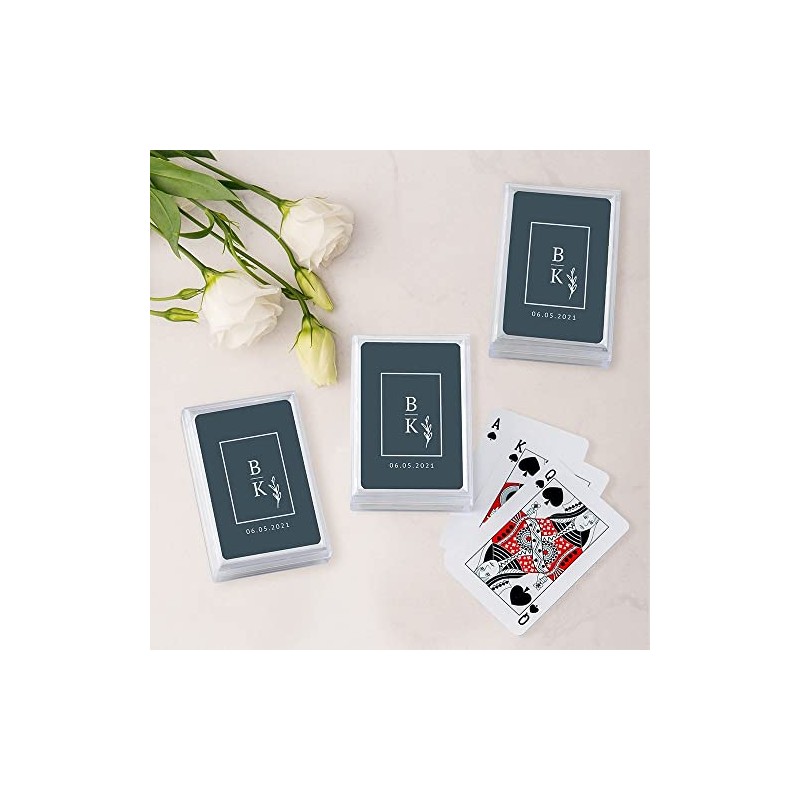 - Cost of customization included! Enter your custom name, date, or text to be printed onto each playing card to make this a unique wedding favor to remember the occasion!