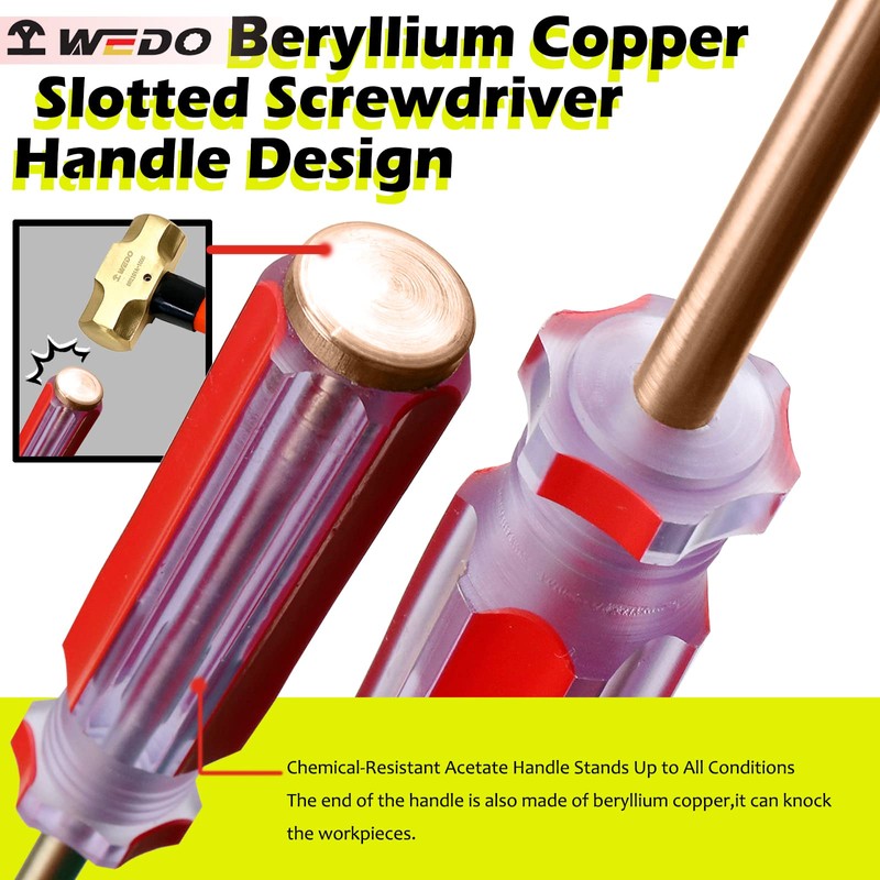 WEDO Non-Sparking Slotted Screw Driver, Spark-free Safety Flat-head Screwdriver, Beryllium Copper, Non-Magnetic, DIN Standard, BAM & FM Certificate, 6Inch, 5 * 75mm