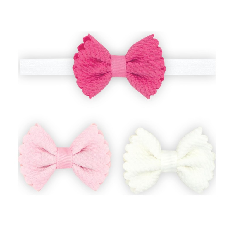 Wee Ones Girls' Baby Three Pack Tiny Soft Textured Butterfly Hair Bows and One Add-a-Bow Band, Hot Pink, Pink, and White