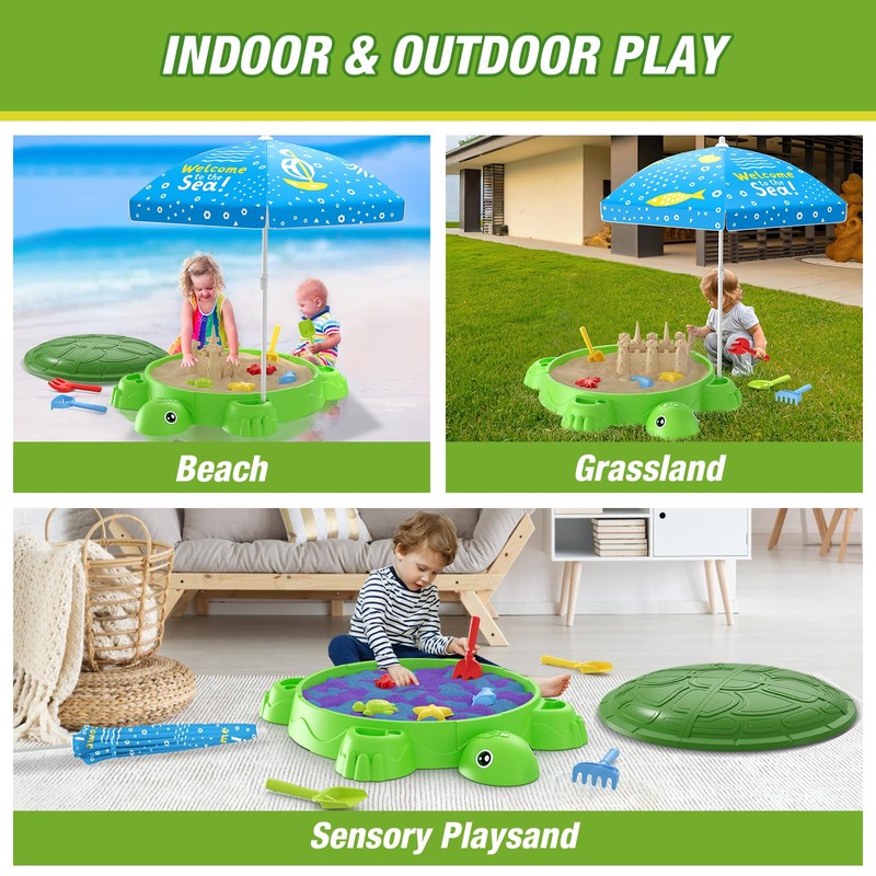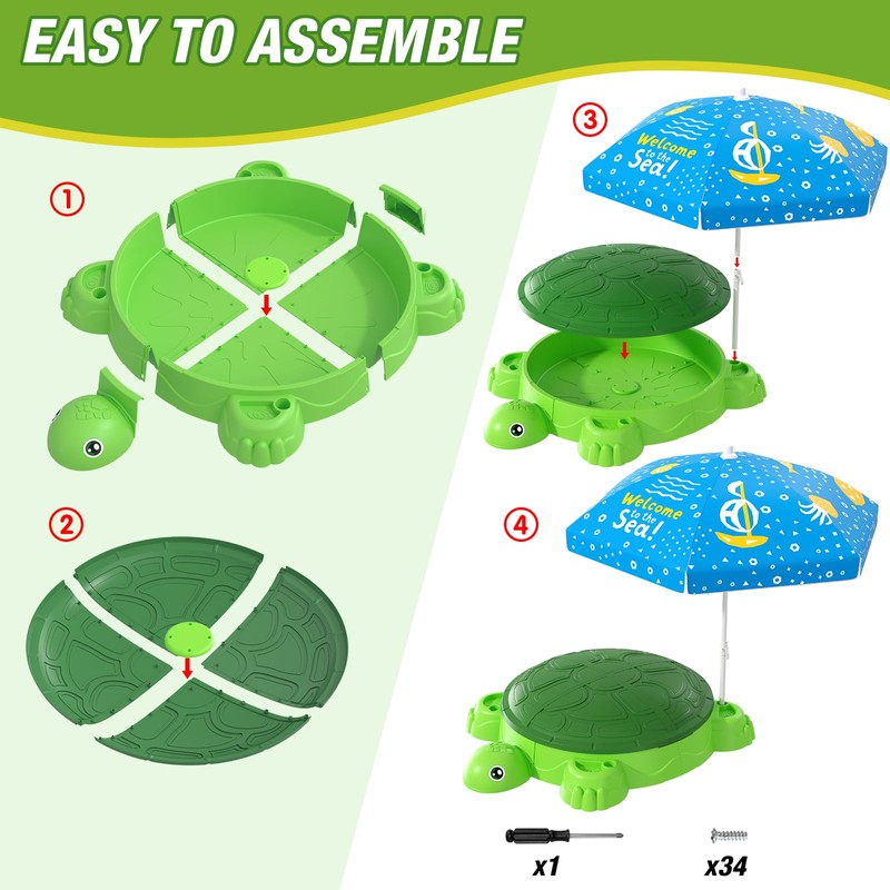 - Easy to Assemble & Clean: Turtle Sandbox with cover comes with all assembly parts and detailed assembly instructions and takes only 10 minutes to assemble. After the sand play, simply rinse with water and wipe clean and leave it at home, or you can put the lid on and store the sand in the sandbox for your child's next play. The sandbox is a great storage box.