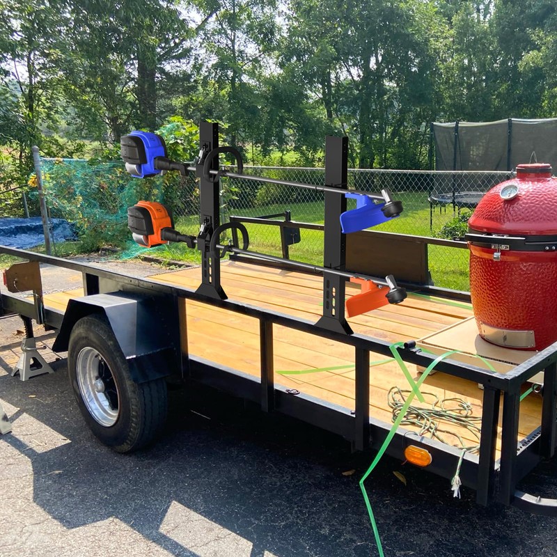 - MULTI-PURPOSE ORGANIZER: Our trimmer rack for open trailer not only fits string trimmers, edgers, tillers, and pole saws, but also fits rakes, brooms, shovels, pitchforks, and other straight-axis tools, it is the perfect organizer for multipurpose gardening equipment storage