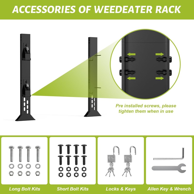 - SECURITY DESIGN: Our weed eater rack holder is designed with lockable positions, you can securely lock your hedge trimmer racks with our locks, preventing tools from moving and getting lost on the rack and keeping them safe