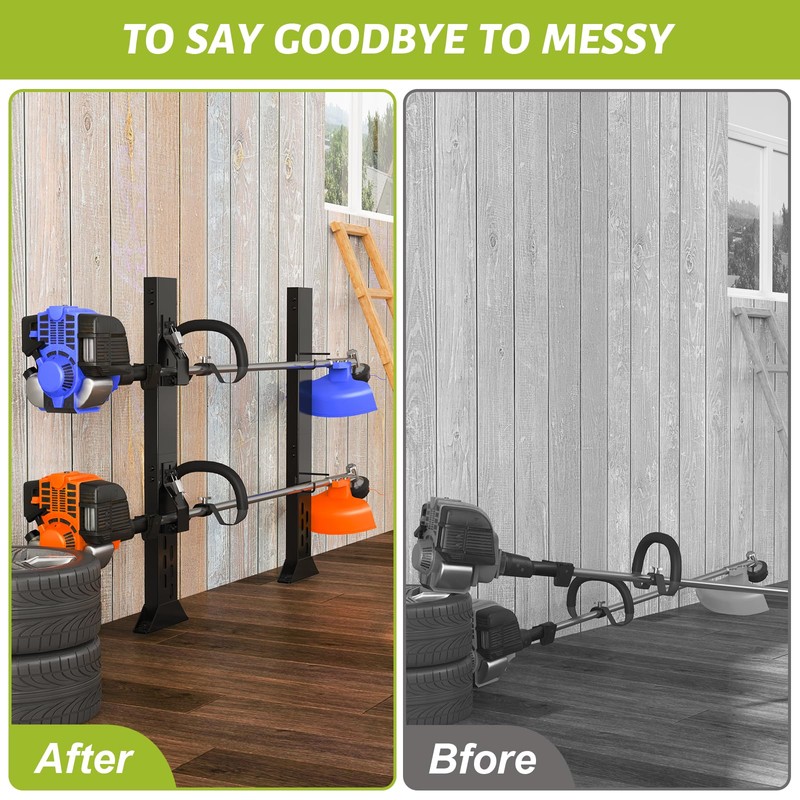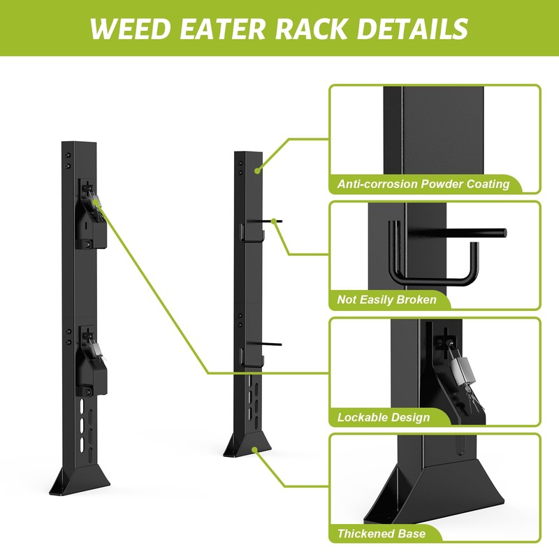 - RUSTPROOF & ANTI-BREAKAGE: Our trimmer rack is made of sturdy heavy-duty steel, coated in waterproof and rustproof black coating. It is designed with a thickened H-shaped base to prevent any breakage during use