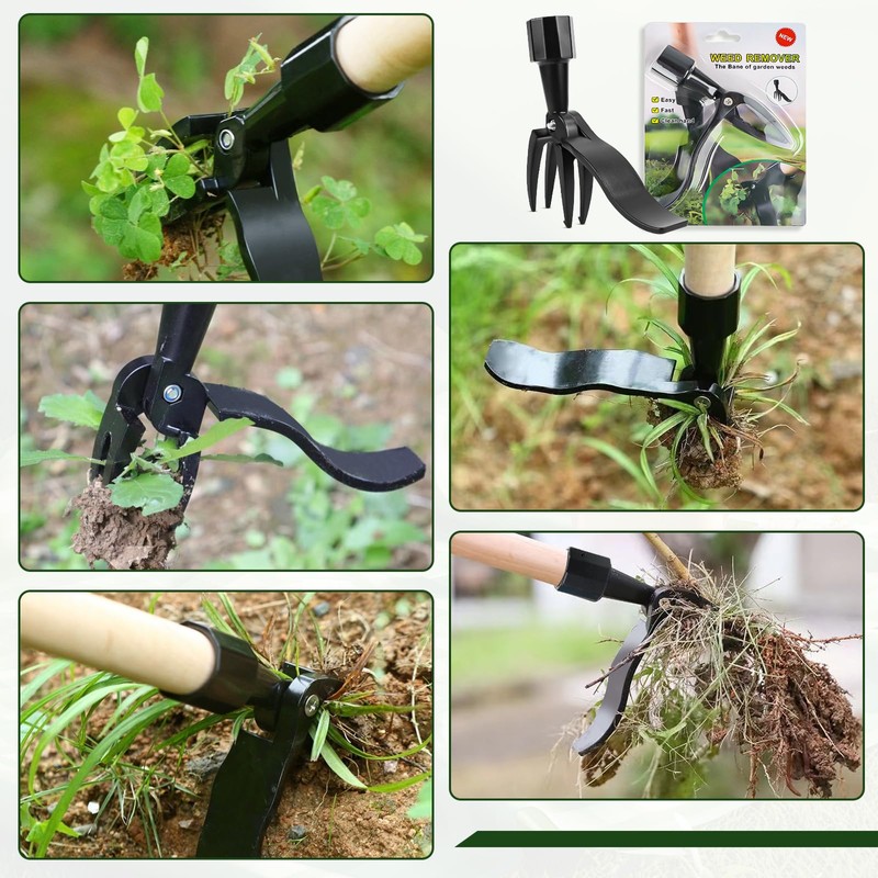 - Efficient weed cutter: the improved stand up weed remover device is made of high-strength aluminium alloy and four-tooth cast steel jaws with strong torque and strong clamping force, which are not easy to break and can remove weeds easily and permanently.
