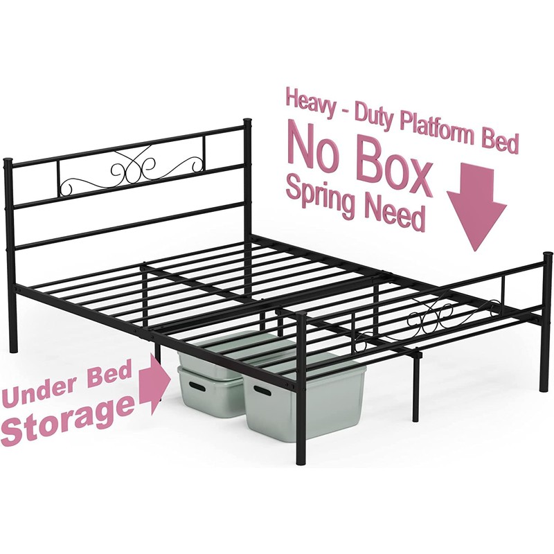 Weehom Queen Bed Frame with Headboard and Footboard Metal Platform Bed Mattress Foundation Under Bed Storage No Box Spring Needed Easy Assembly, Black