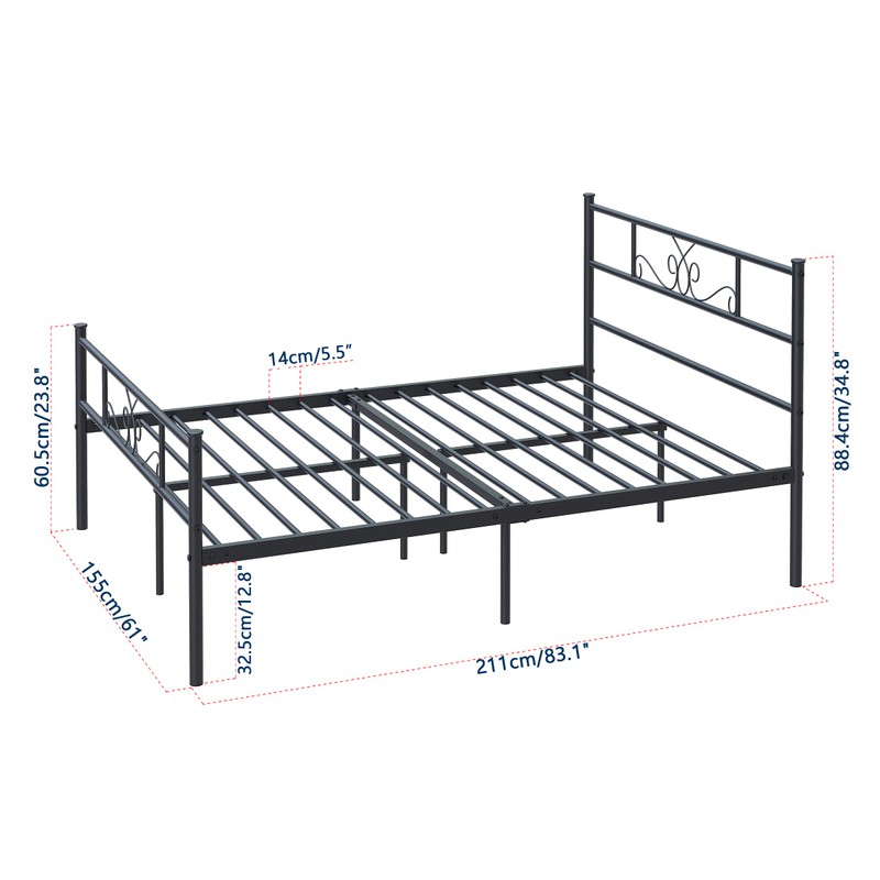 - Bed Frame Queen Size: 83.1" x 61" x 34.8" (L*W*H), no mattress comes. Maximum support 352 lbs.