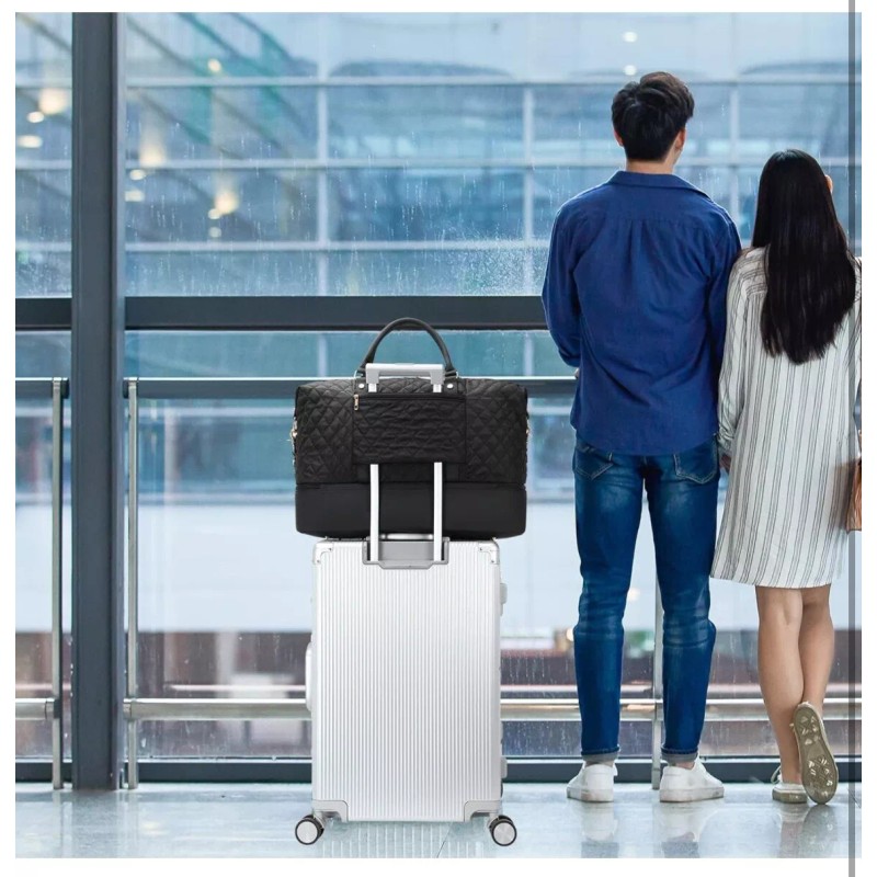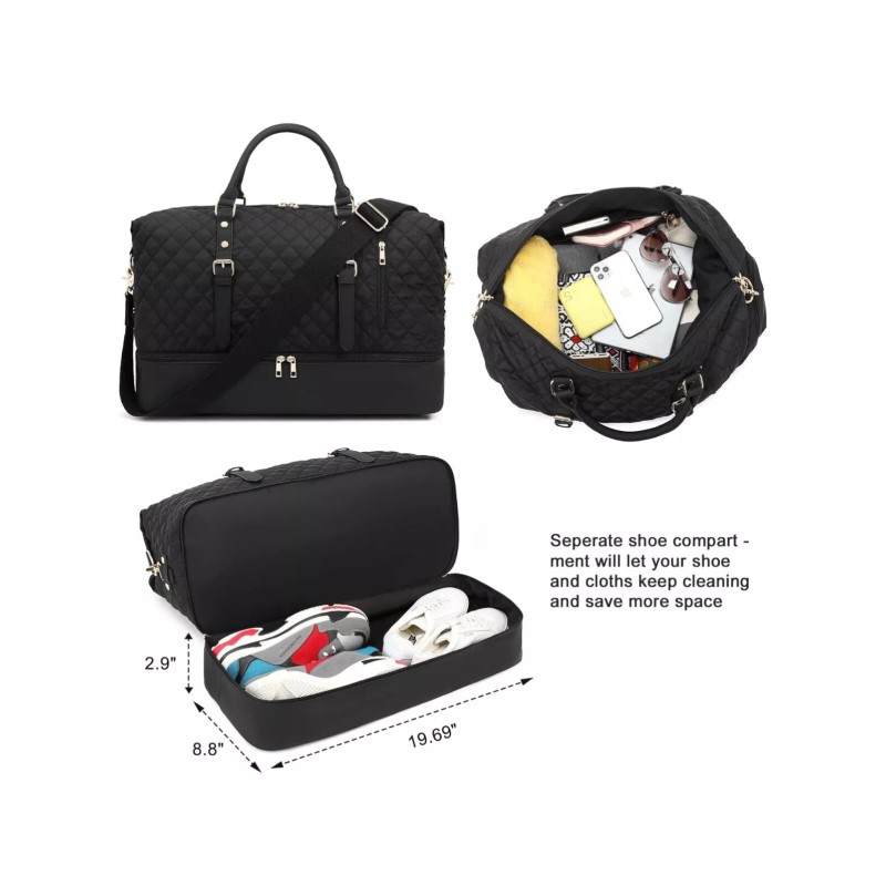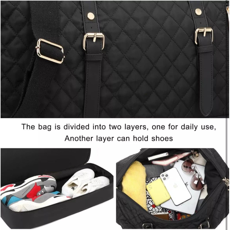 Weekender Overnight Bag Oversized Travel Duffel for Men and Quilted black new