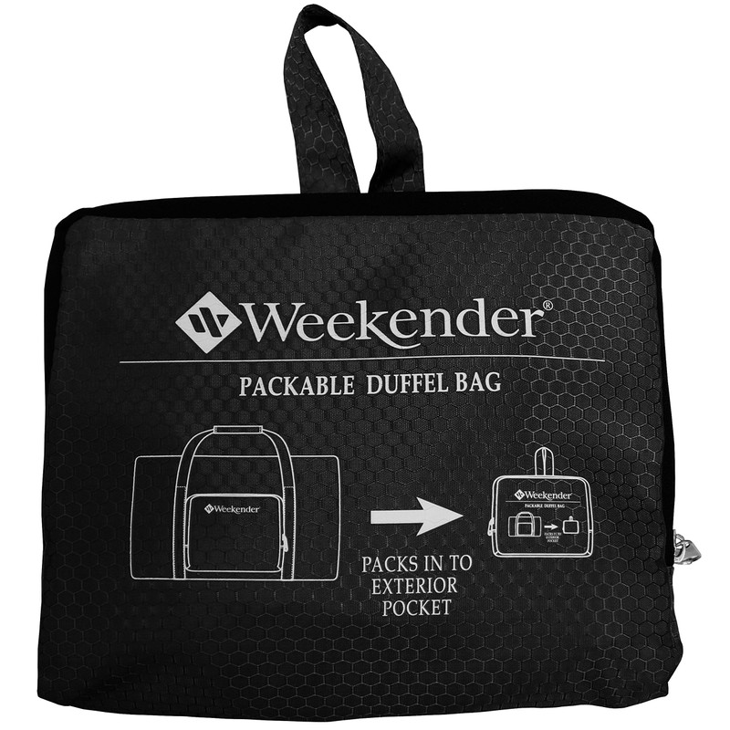 Convenience and design meet in this unique Weekender Packable Duffel Bag. This Duffel Bag folds into the exterior pocket for packaging and storage. Traveling you will find it very convenient as it can fit practically everywhere you decide to pack it. This Packable Duffel Bag is made of durable Polyester Honeycomb weave for added strength and durability making Weekender a brand you can trust.
