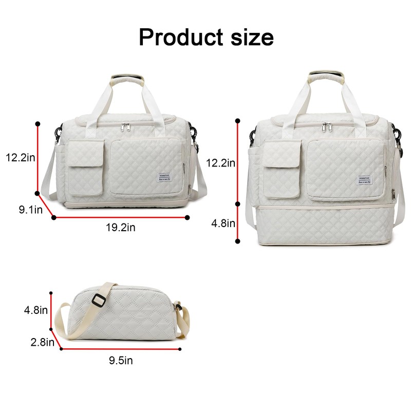 - 【Multifunctional Tote Bag】Our gym bag can be used for various indoor and outdoor activities. It can be used as a dry and wet separate bag, gym bag, dance bag, luggage bag, beach bag, cheer bag, mommy bag, hospital bag, nurse bags, overnight bag, weekender bag, which is the perfect partner for short-distance, travel and air travel.