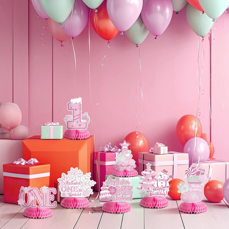 - What You Get: contains 8 pieces of winter onederland birthday decorations, with styles such as snowflakes, happy birthday, etc. These centerpieces are sure to decorate your table and enhance the joyful party atmosphere