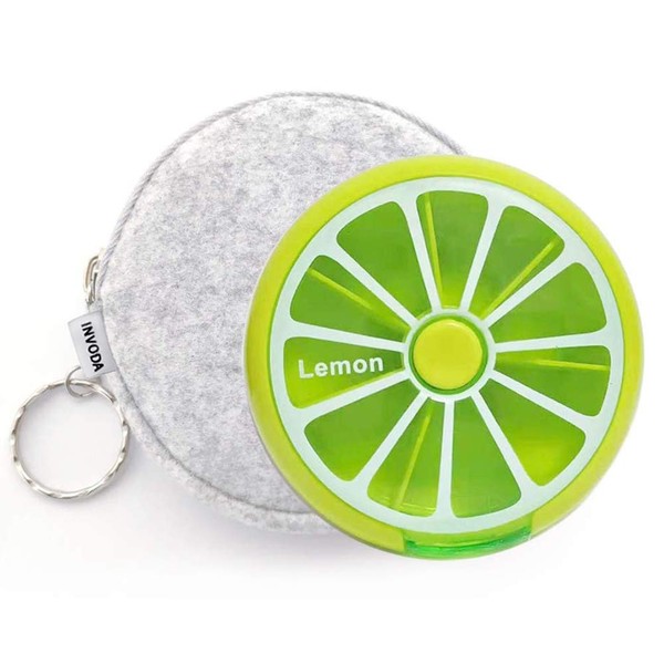 Weekly Pill Organizer 7 Day 3 Times a Day INVODA Large Daily Pill Cases for Pills Vitamin Fish Oil Supplements Container (Lemon+Light Grey Bag)