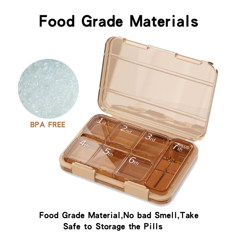 - 【HEALTH FRIENDLY】Pill organizer is made from high-quality material, take safe to storage the pills, and friendly to the elderly, children or pregnant,The anti-spill pill box is equipped with a buckle design which can prevent it from opening even when it is dropped, so you can worry that the pill box will be opened in your bag