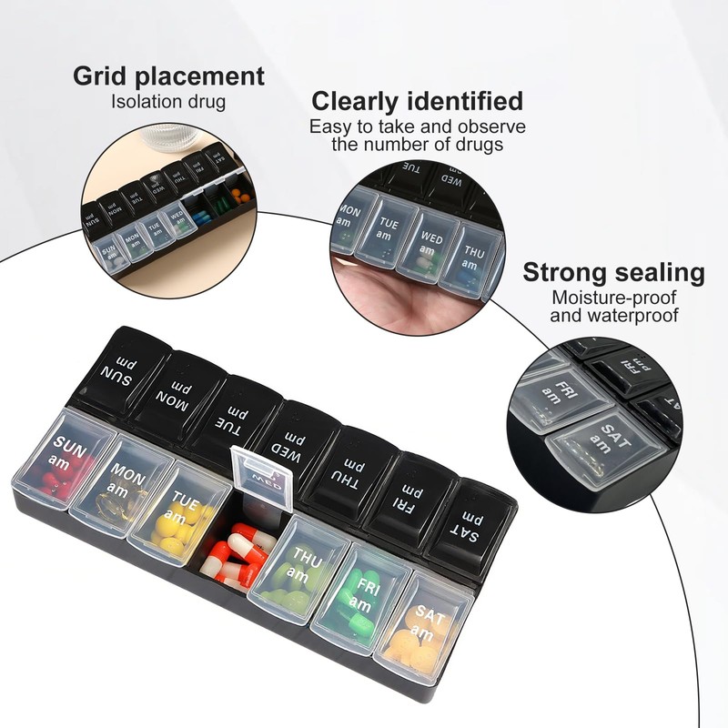 - 【Easy-View Compartments】Features large, clearly labeled AM/PM compartments for effortless identification and access. The intuitive layout allows for quick pill sorting and visibility, even in low light, reducing errors and saving time during busy mornings or nights.