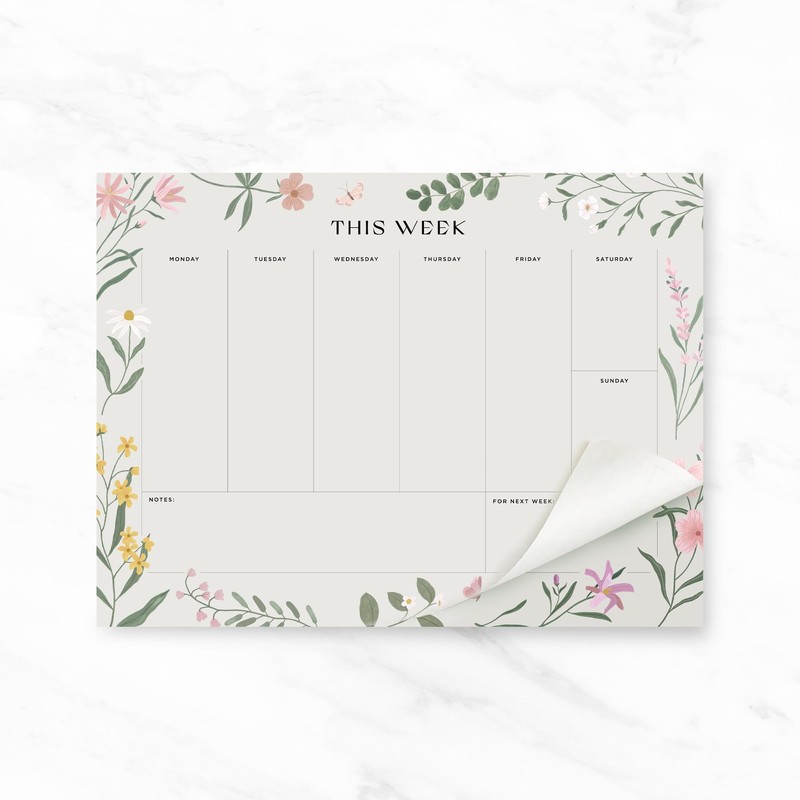 Weekly Planner Pad - 52 Undated Tear Off Sheet Planning Pad with Daily Schedule & To Do List - A4 Organiser, Work Notepad and Meal Planner for Fridge, Wall & Desk - 100gsm, Floral, 28cm x 21cm