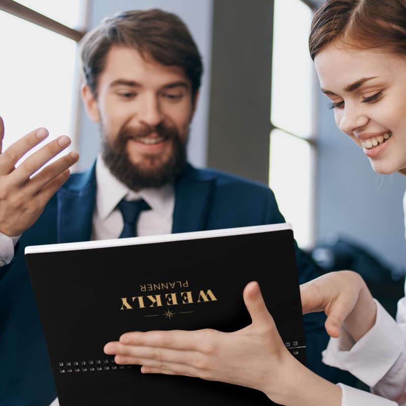 - SIMPLE DESIGNED- The cover of weekly planner has classic color. Advanced design of gold stamping logo, strong spiral bound. The spiral bound can be used as a pen holder. In addition, the weekly planner will be included in an exquisite box, and there will also be an extra pen for you.