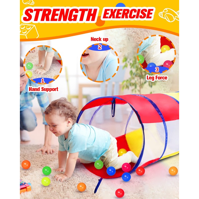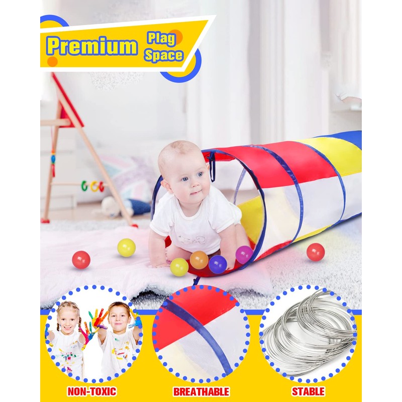 - ✔ Safe mesh window design – Add breathable mesh window to the colourful tunnels to increase the ventilation of the tunnels while making it easier for parents to pay attention to the safety of their babies.
