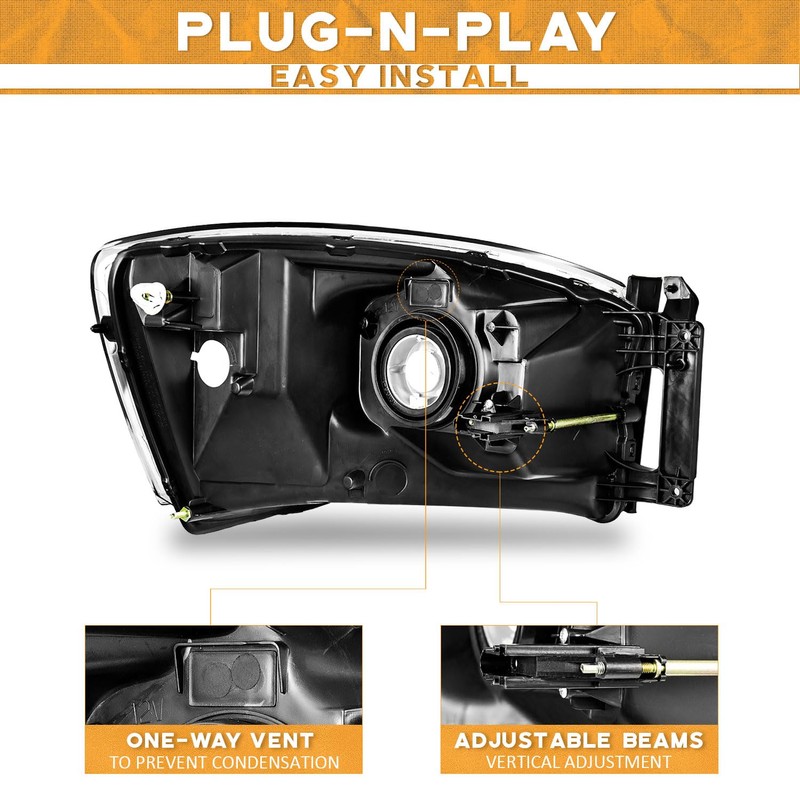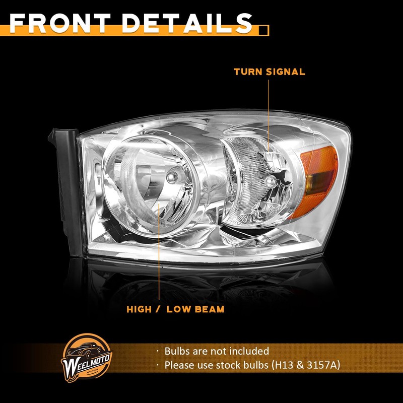 - OEM# 68003125AD, 68003124AD, CH2503180, CH2502180: Get a 100% match for your vehicle: This replacement is ideal for 2006-2008 Dodge Ram 1500/2500/3500; 2009 Dodge Ram 2500/3500 Old Body Style Only, NOT Compatible on models w/ Bottom Amber Reflector. Kindly note, bulbs are not included; please use stock bulbs for installation. Ultra-brightening chrome bezel: Get premium plating with durable material