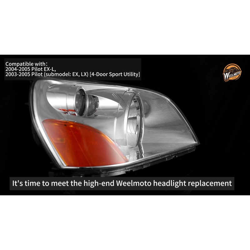 WEELMOTO Pair Headlights For 2003-2005 Honda Pilot Chrome Headlamps Left & Right