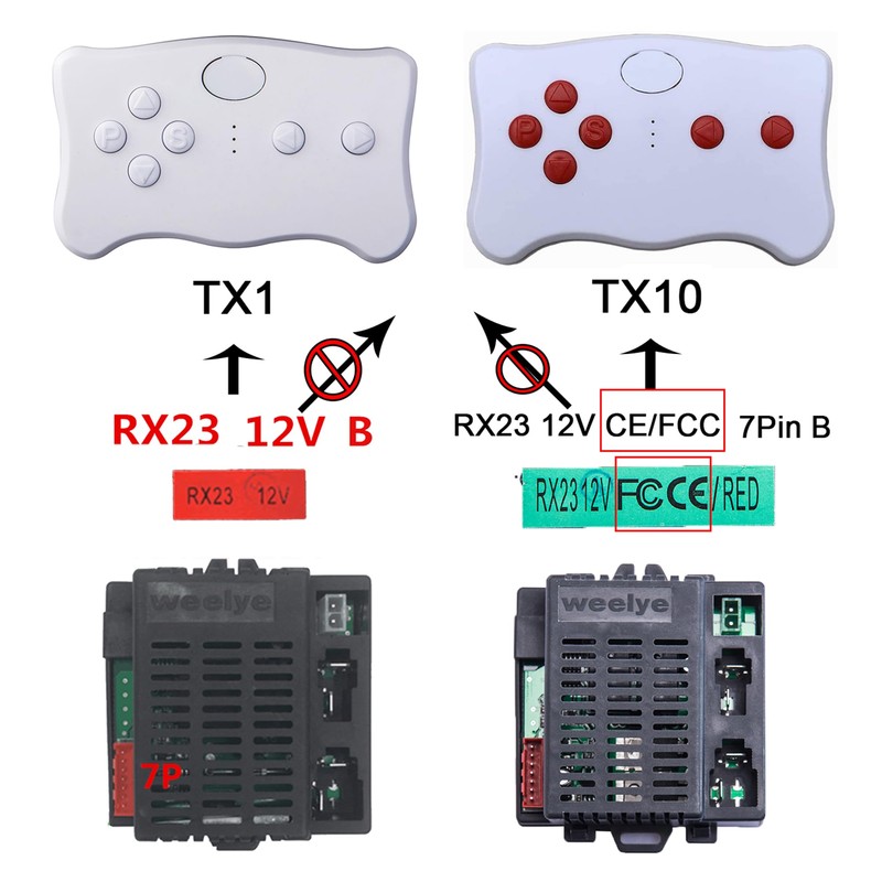 - TX1 2.4G remote control, matched with weelye without "CE" label series receiver.🚨It's not a universal model,Special accessories for children's electric vehicles.