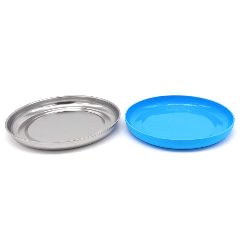 Acero inoxidable 304 de grado alimenticio higiénico: los contenedores y superficies de acero inoxidable son ampliamente utilizados en cocinas profesionales por una buena razón. La durabilidad duradera del acero inoxidable, resistente a los arañazos y las superficies higiénicas fáciles de limpiar también son excelentes razones para usarlo en la cocina y el comedor de tu familia. Es más fácil de limpiar (apto para lavavajillas). y no raya ni decolora como los platos de plástico, y es ligero y no se romperá ni romperá como los platos de cerámica. Las placas de acero inoxidable y metal no son aptas para microondas.