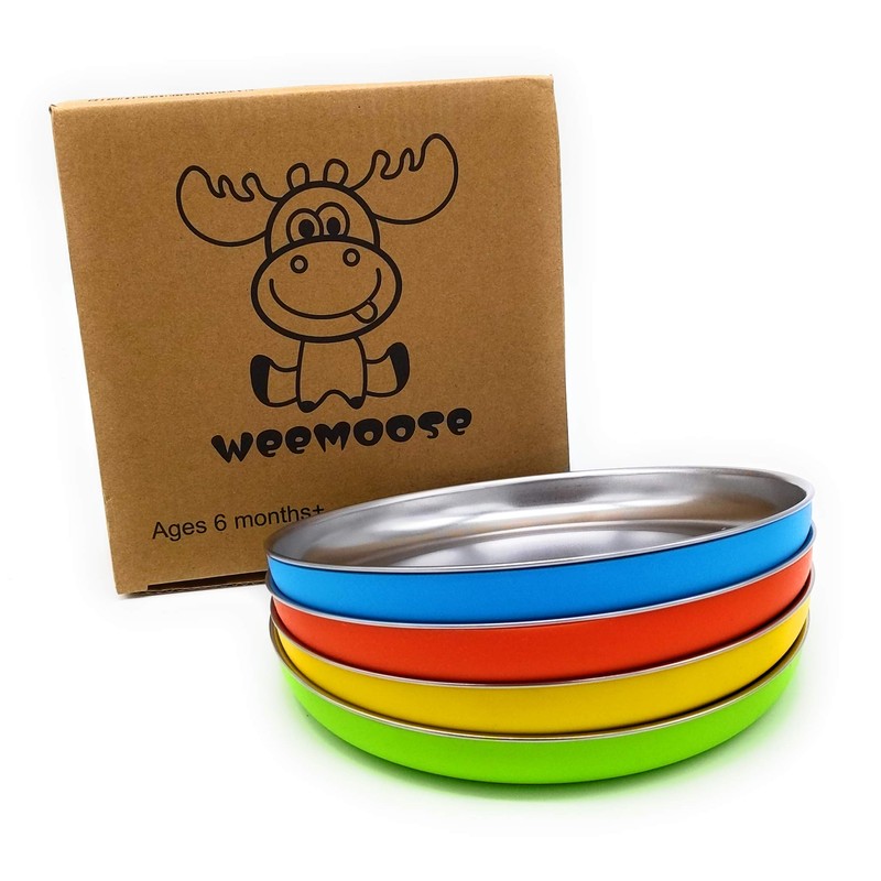 - Tamaño perfecto para niños de todas las edades: cada plato es de 17,78 cm de ancho y 1,9 cm de profundidad, los platos de acero inoxidable de alta calidad WeeMoose son el tamaño y forma perfectos para bebés que comienzan y para niños de todas las edades. Estos platos de fondo ancho para niños pequeños son resistentes a derrames y tienen bordes curvos, lo que hace que sea fácil para sacar sopas, guisos y todo tipo de alimentos sólidos. ¡Grandes platos de aperitivos!