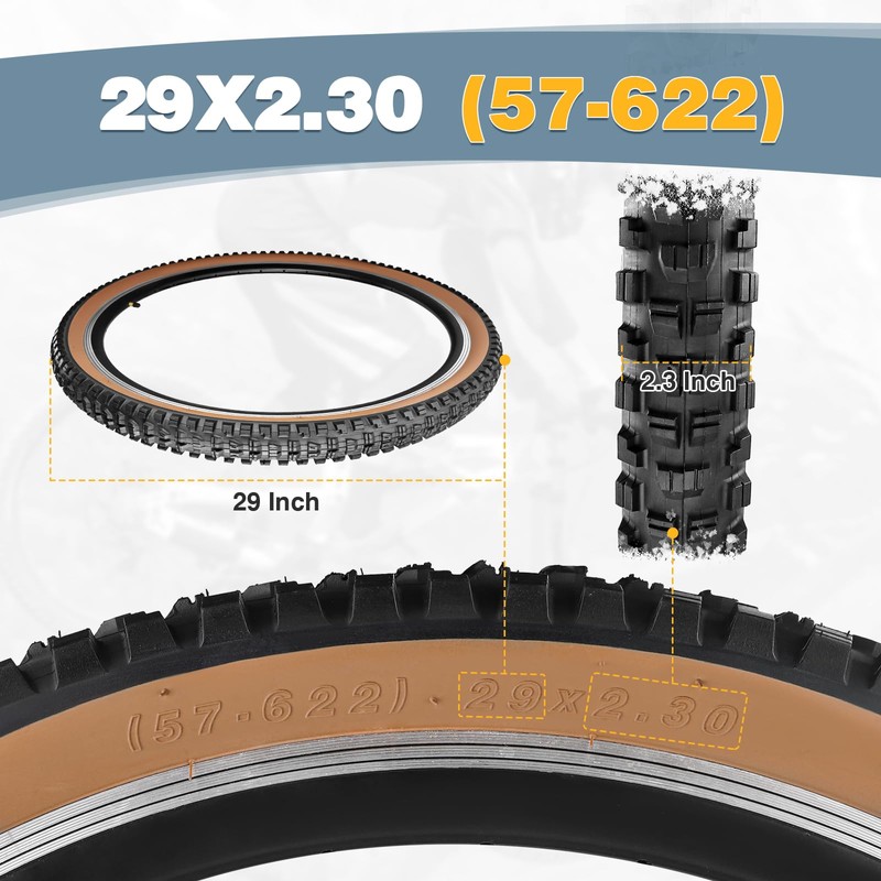 - Size: 29 x 2.3 inch MTB bike Tire,Etrto 57-622, with 29 x 2.125-2.35 bicycle inner tubes, 48mm schrader valve