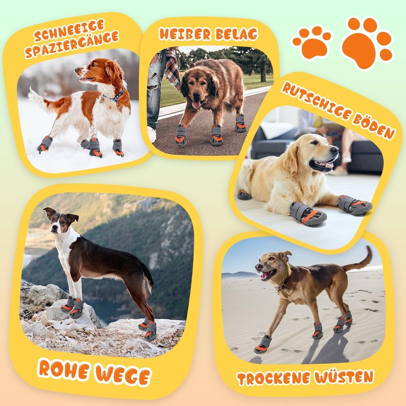 - EASY USE & CUSTOMIZATION Wide mouth opening allows easy on and off dog shoes. Two adjustable Velcro fasteners ensure that the shoes fit optimally and do not slip, which further improves the paw protection dog injury