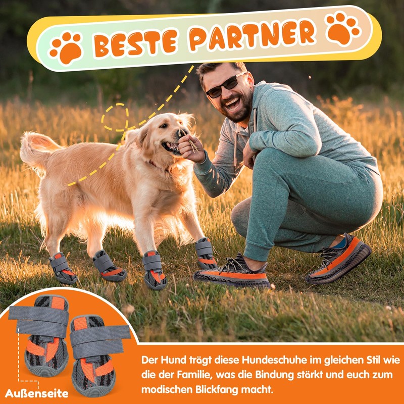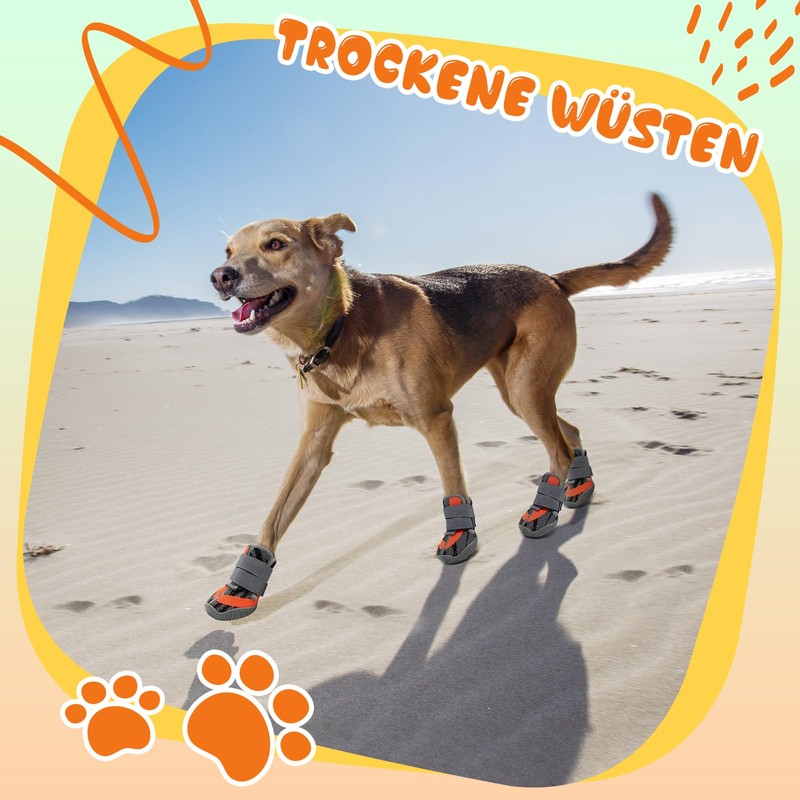 - LIGHTWEIGHT AND COMFORTABLE WEARING - These dog shoes are made of tightly woven, breathable mesh material, which makes you feel light and comfortable. The thick inner lining in the ankle area protects against friction and ensures a comfortable fit, ideal for all outdoor activities