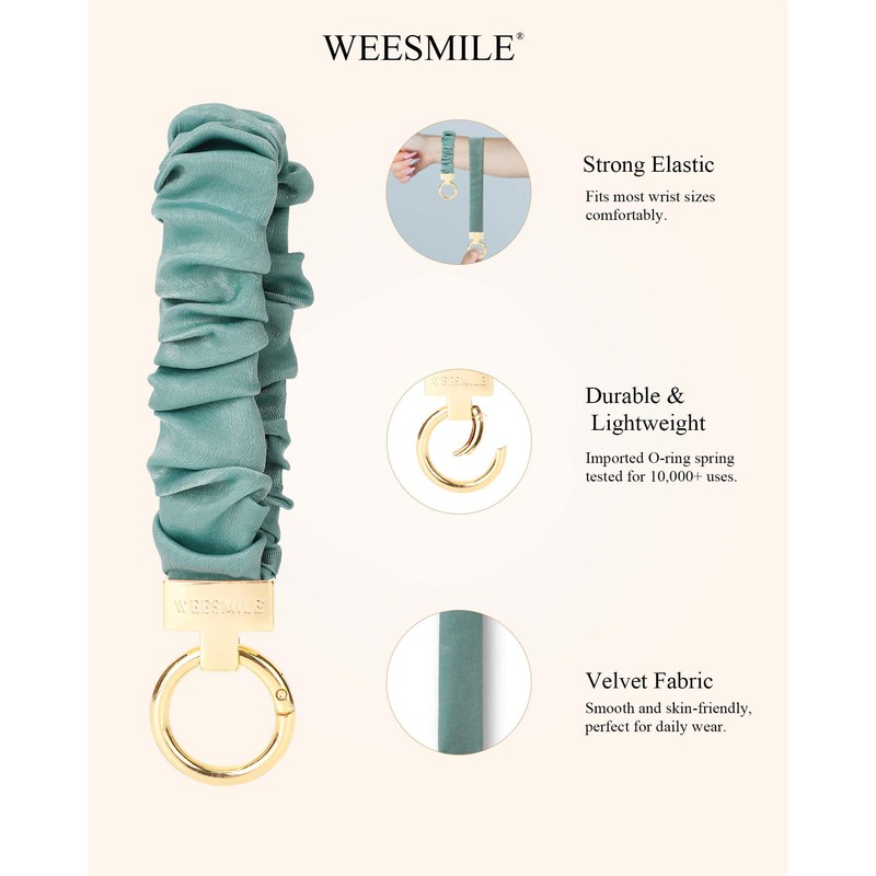 WEESMILE Keychain Wristlet, Stretchy Key Chain for Car Keys with D ring, Cute Scrunchie Wrist Bracelet for Women Men (Sage Green)
