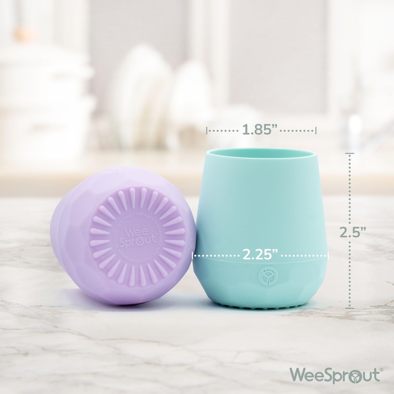 WeeSprout Silicone Baby Training Cups - Set of 2 Soft Silicone Cups - 2 oz Open Cup for Baby 6+ Months - Non-Slip Grip, Weighted Base - Gentle on Gums & Teeth (Matte Blue & Matte Green)