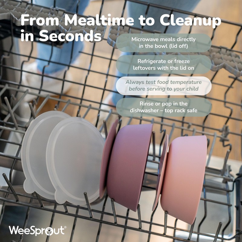 - ✅ DISHWASHER, MICROWAVE, & FREEZER SAFE SUCTION BOWLS FOR BABIES - Serve food, freeze and heat leftovers, then toss your bowl in the dishwasher. No more dirtying multiple dishes for one meal! Your silicone baby bowls are 100% dishwasher, microwave, and freezer safe. (*Remove lids before microwaving)