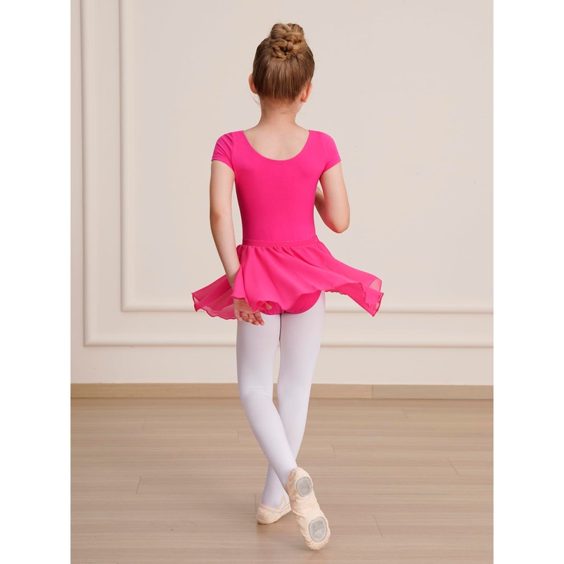 WEGETIT Leotard Girls Gymnastics Toddler Dance Ballet Pink Leotard Dresses with Skirt (Hot Pink,2-4T)