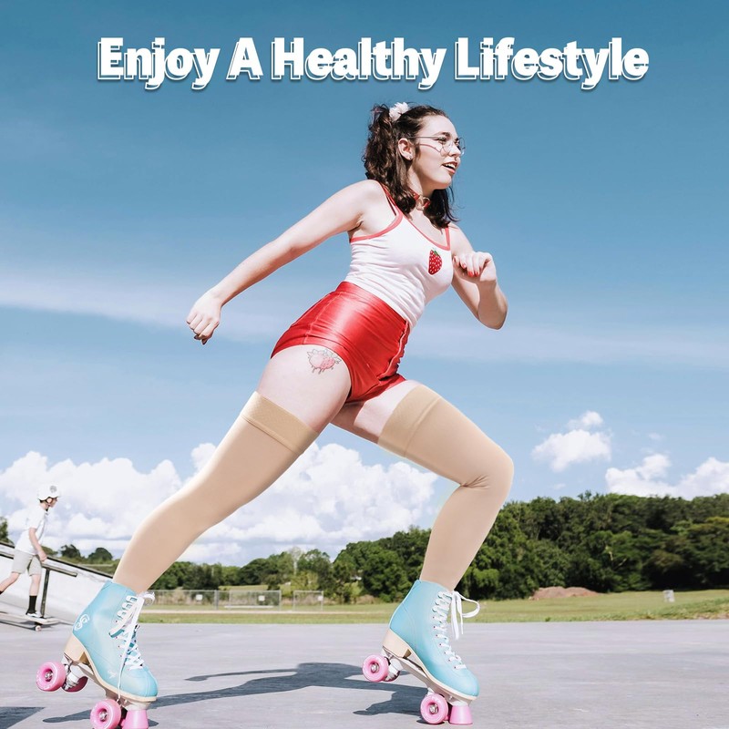 Wegitcs 20-30 mmHg Compression Stockings for Women & Men, Open Toe Thigh High Medical Compression Socks, Support Graduated Compression Hose Sock for Treatment Varicose Veins Swelling(Beige,XX-Large)