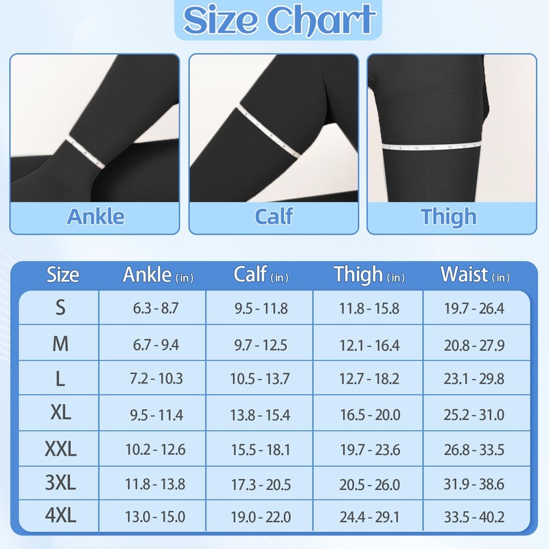- 💖DAILY WEAR: The tight compression stockings provide 360° support for your legs to tighten your tummy, waist and thighs, providing a slimming effect. It is perfect for everyday use for people who stand for a long time or need to maintain posture, such as nurses, teachers, pregnant women, flight attendants, athletes, etc.. Suitable for walking, sitting, standing, travelling and all outfits from casual to work, dressy or formal.